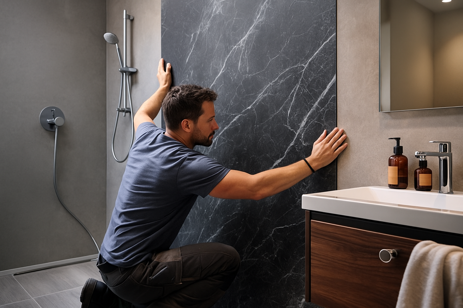 Wil je jouw badkamer vernieuwen? Kunststof wandpanelen zijn dΓ© snelle oplossing. Onze partner Bewust Sanitair plaatst ze vakkundig en geeft jouw badkamer β zodra deze leeg is β binnen één dag een moderne make-over. Vragen of montage nodig? We helpen je graag!